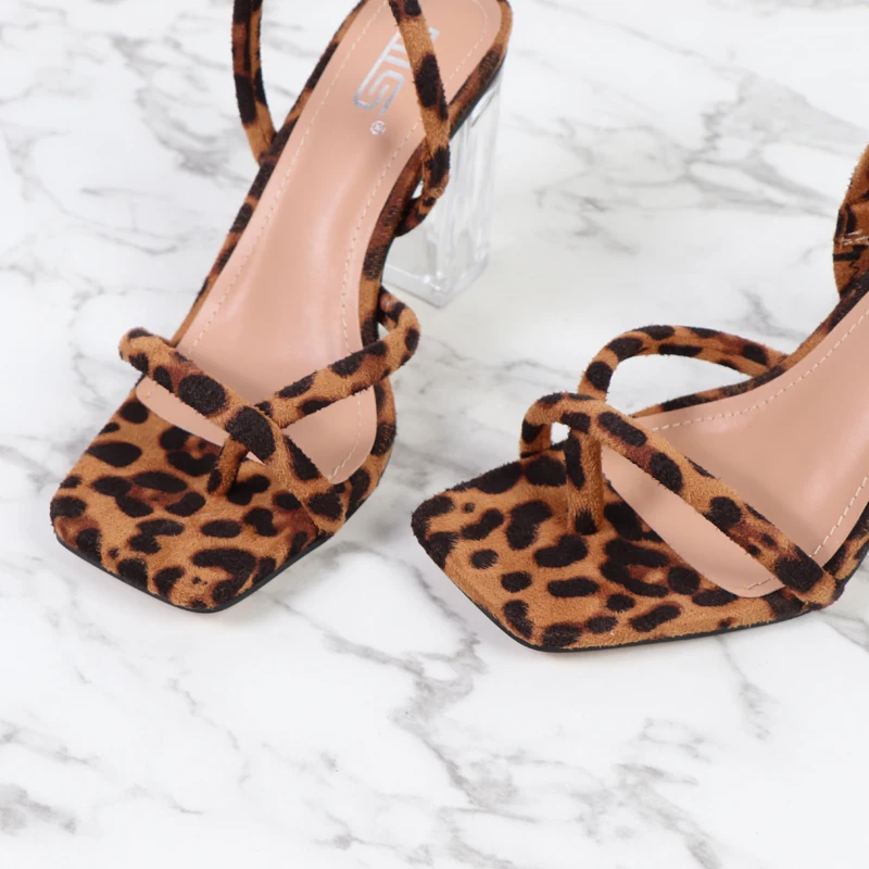 Fashion Women Shoes Sandals High Tichk Square Heel Open Toe 2021 Summer Sexy Pretty Leopard Print Shoes