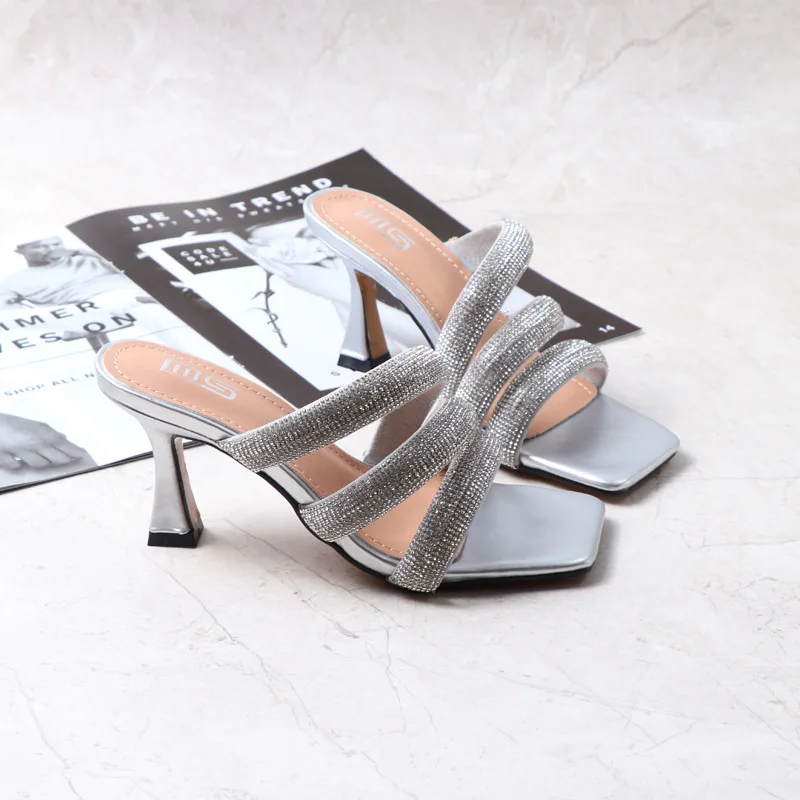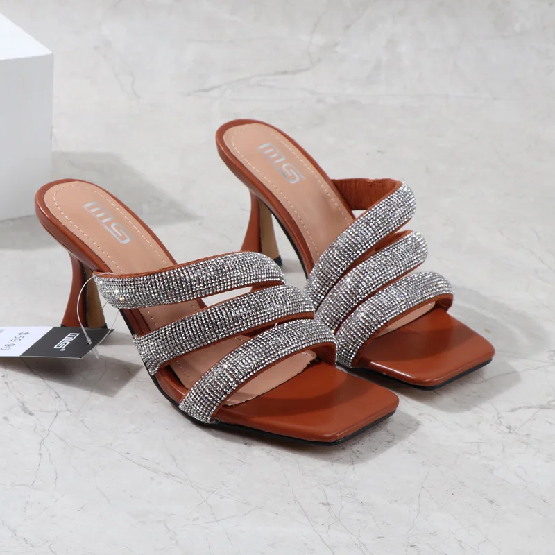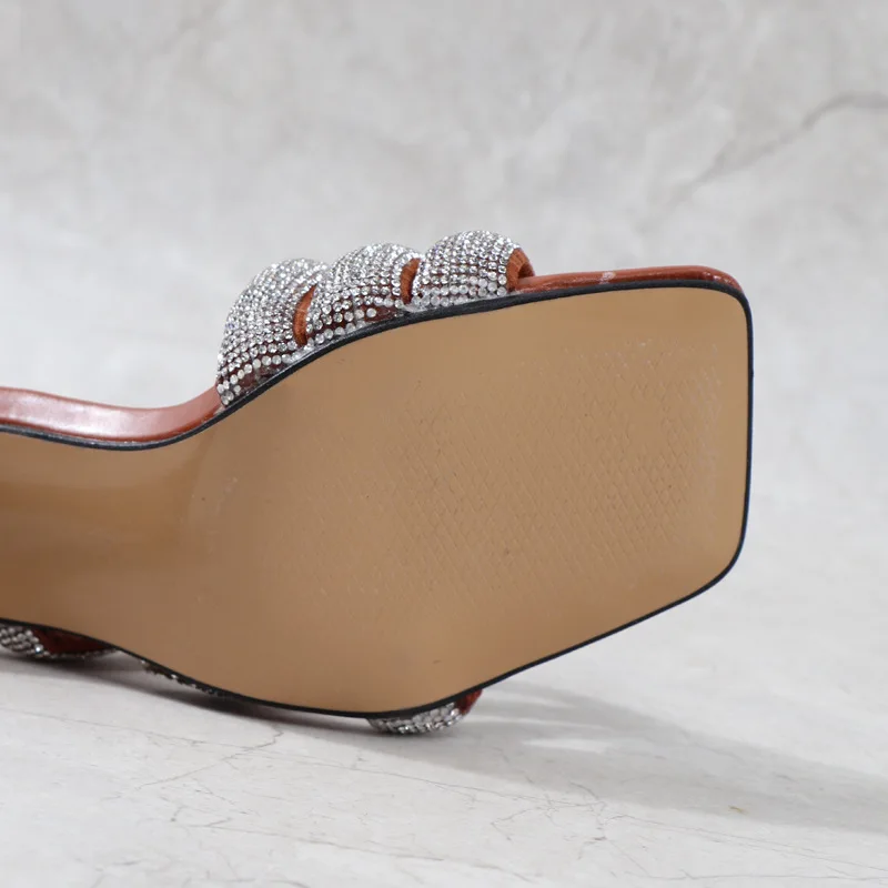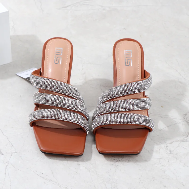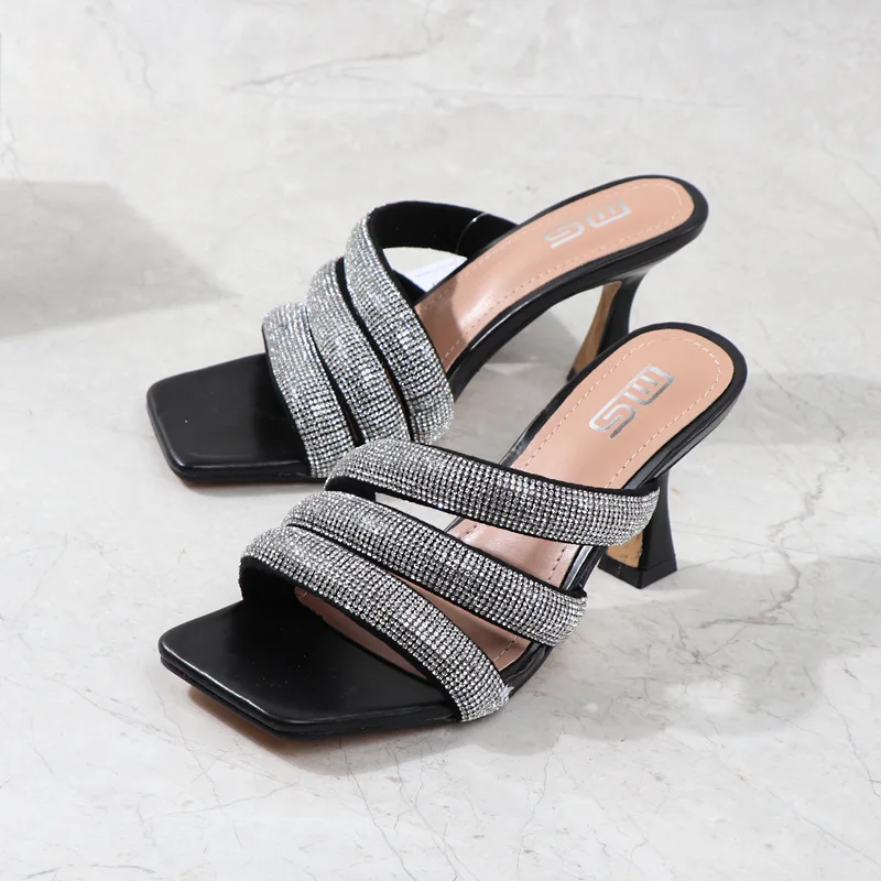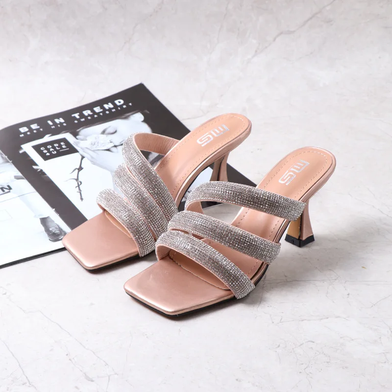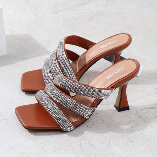 Female Sandals 2021Summer Rhinestone Cross-Border Europe USA New Sexy Wearing Flip-Flop Comfortable Thin High Heel Peep-Toe Shoe
