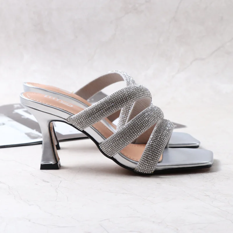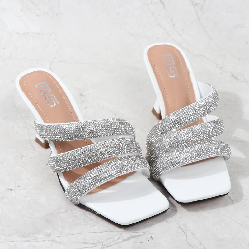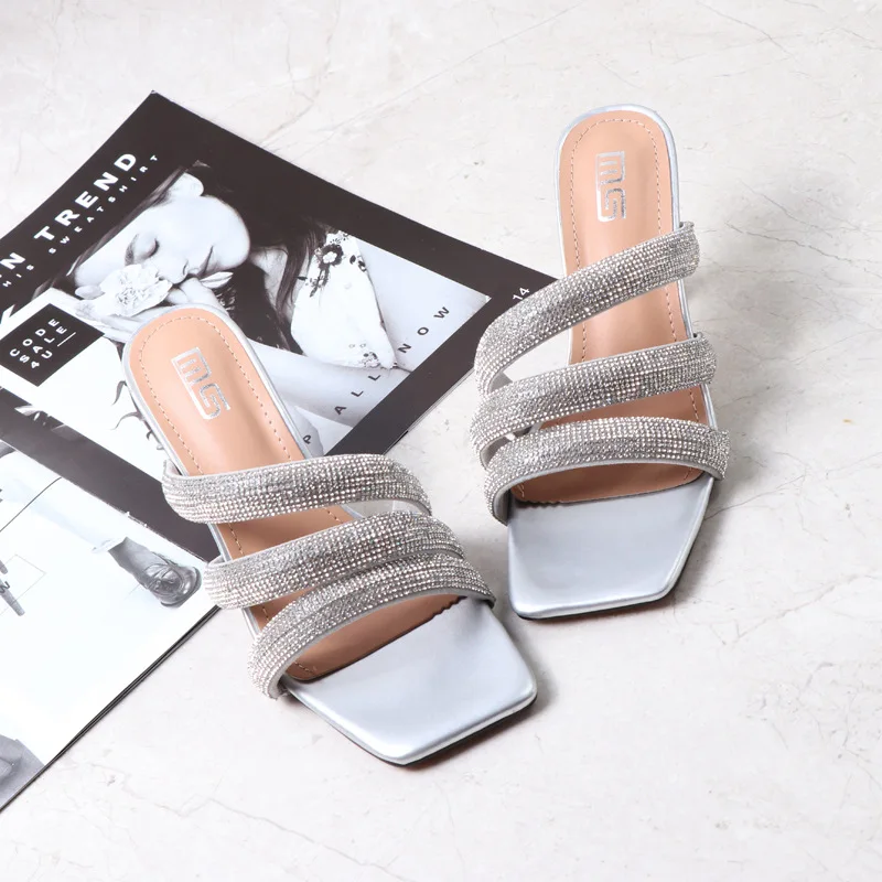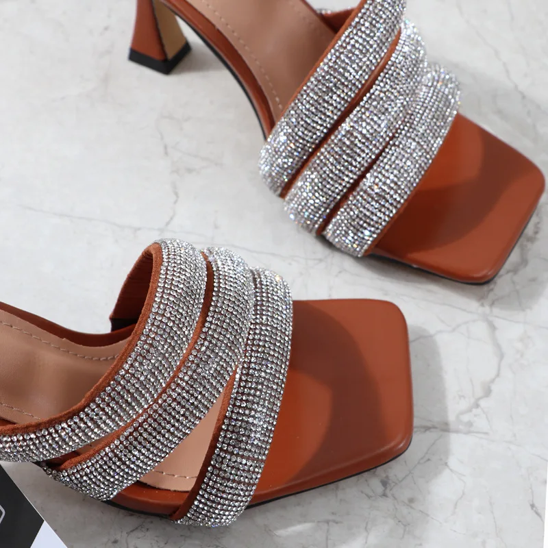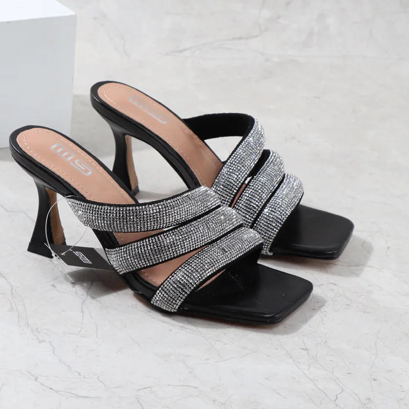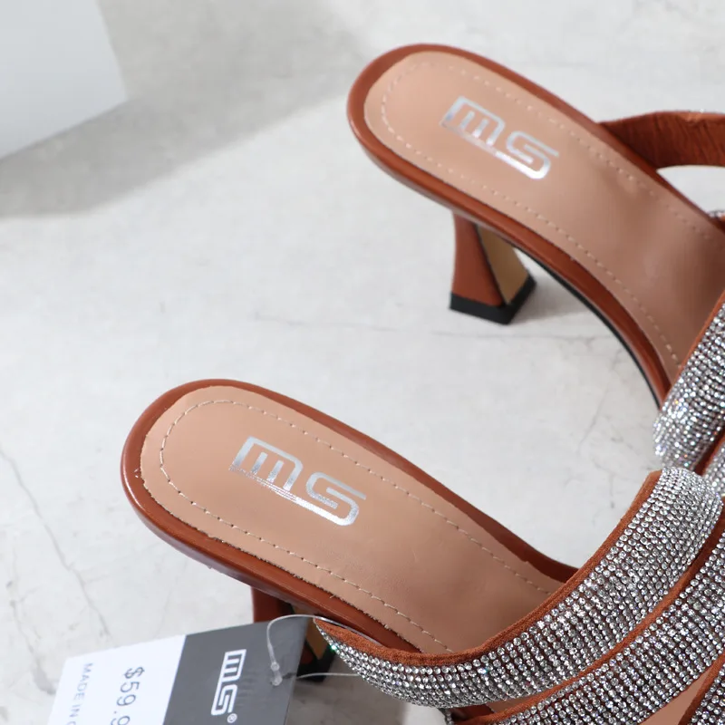 Female Sandals 2021Summer Rhinestone Cross-Border Europe USA New Sexy Wearing Flip-Flop Comfortable Thin High Heel Peep-Toe Shoe