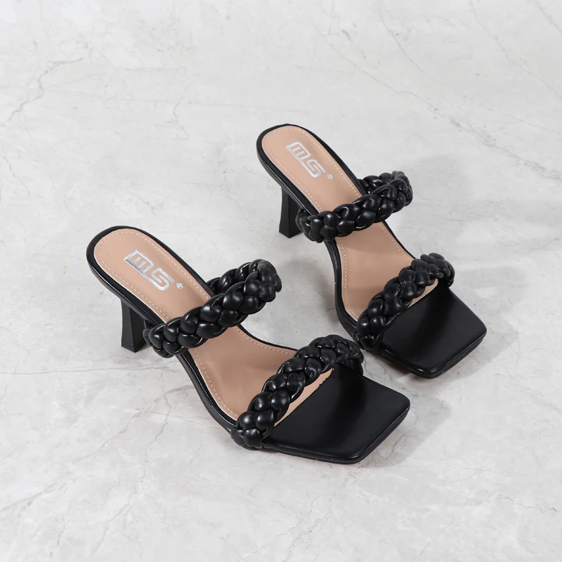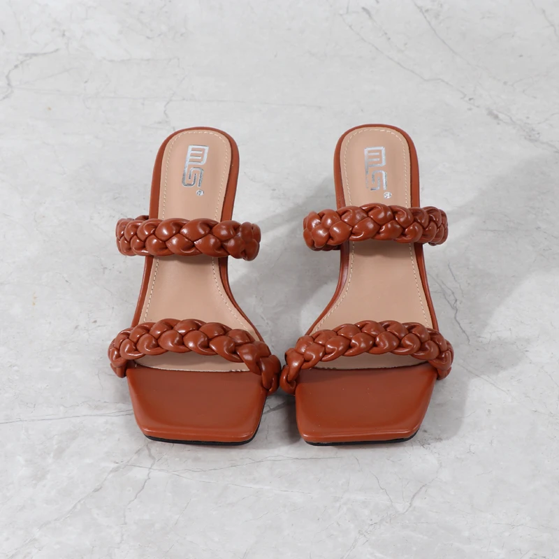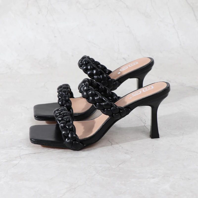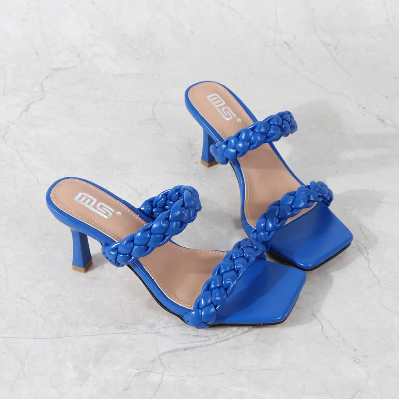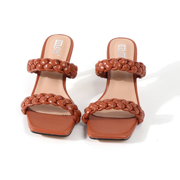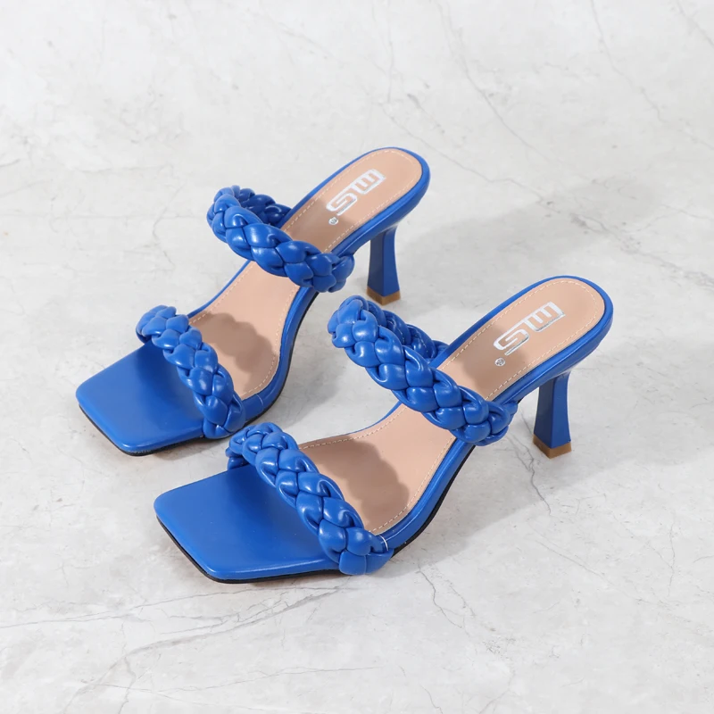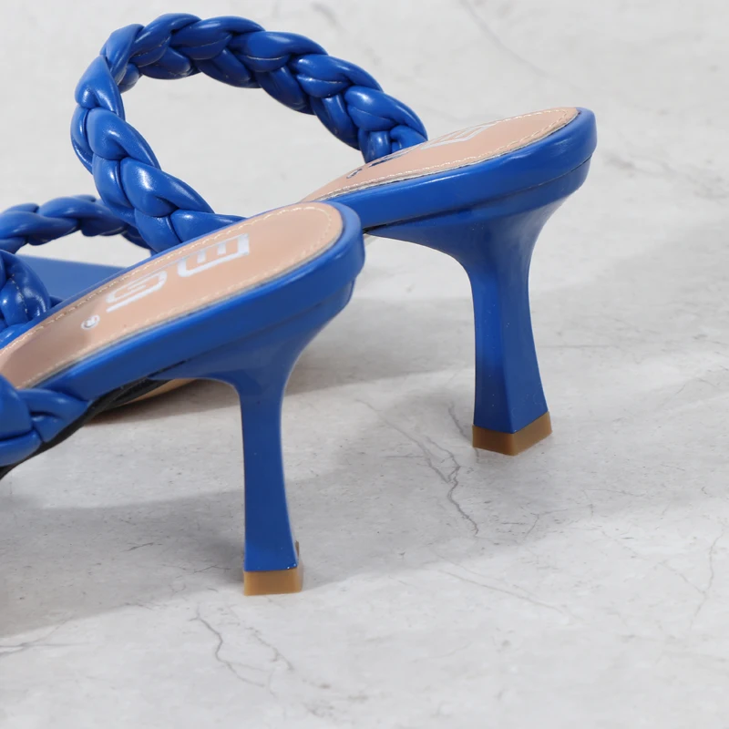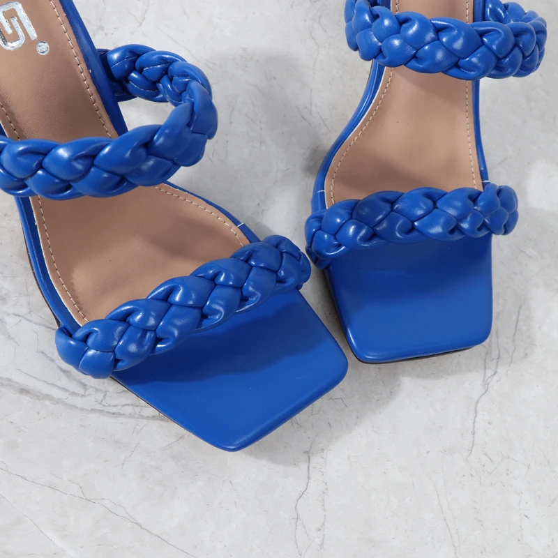 Female Sandals Slippers Twist Braided 7CM High-Thin-Heeled Sexy Fashion All-Match Black Brown Blue Women Shoes