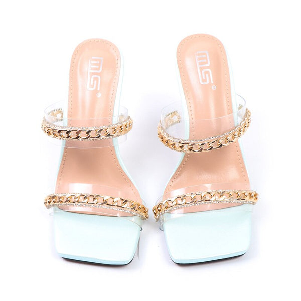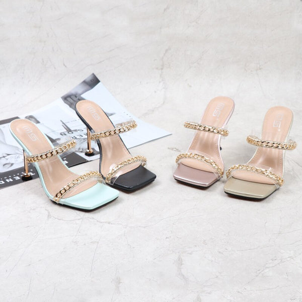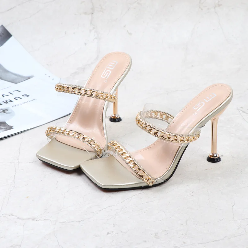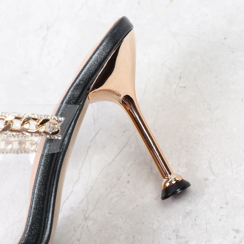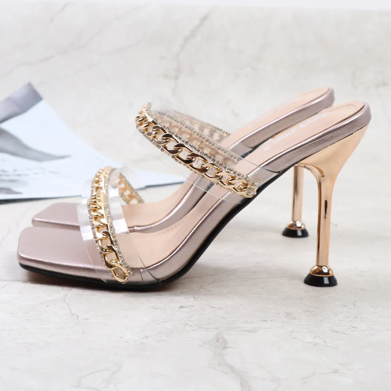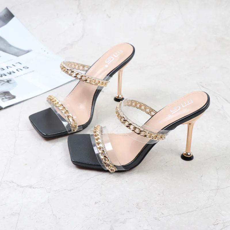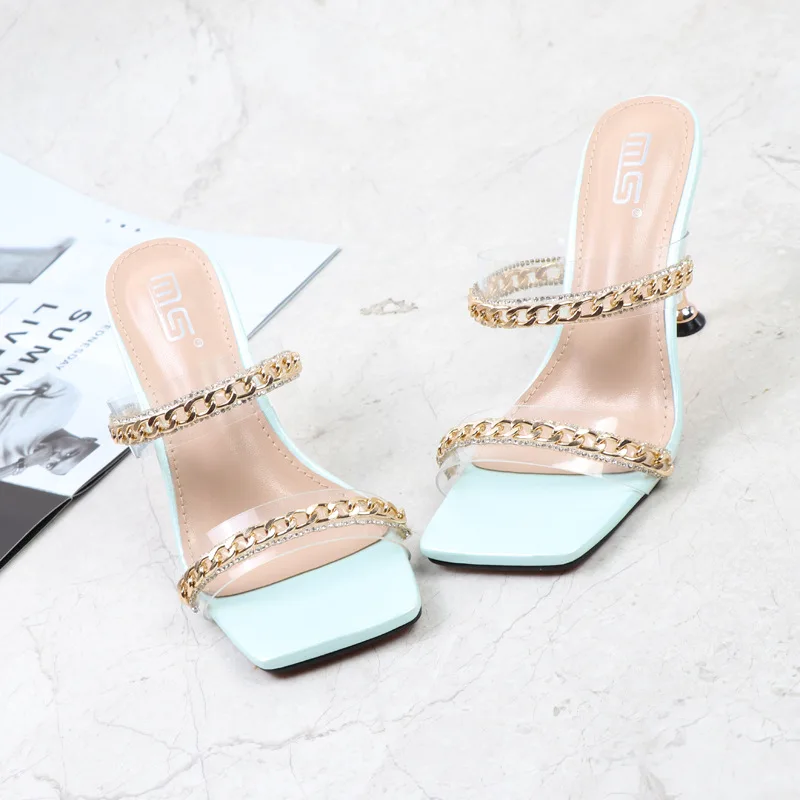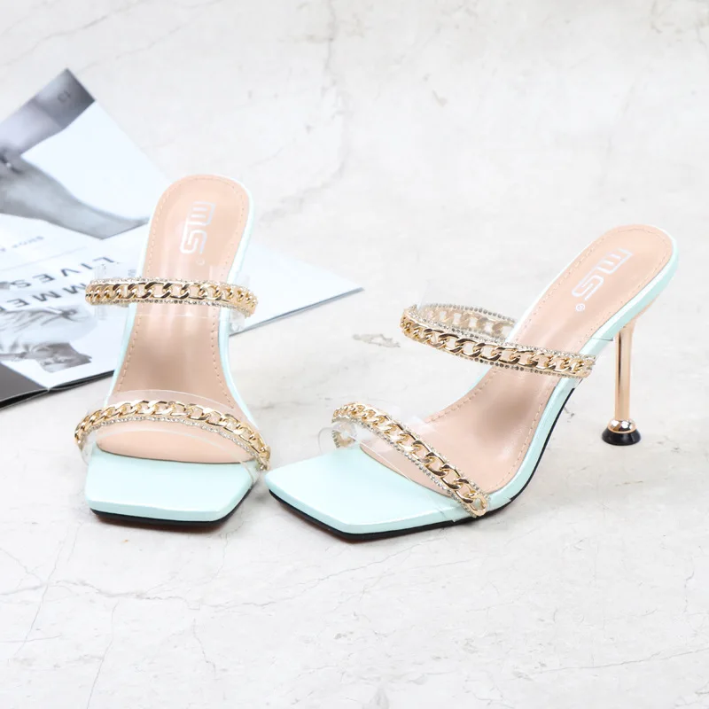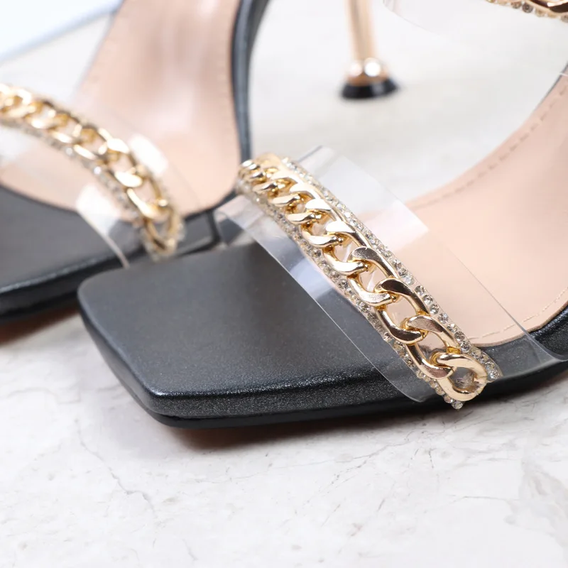 Shoes for Women Summer 2021 Open Toe High Heel Europe and United States Sexy One Word Rhinestone Sandals Big Size Outside Wear