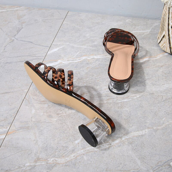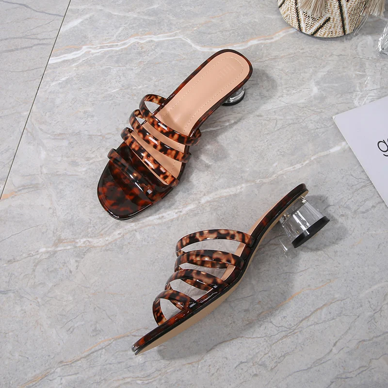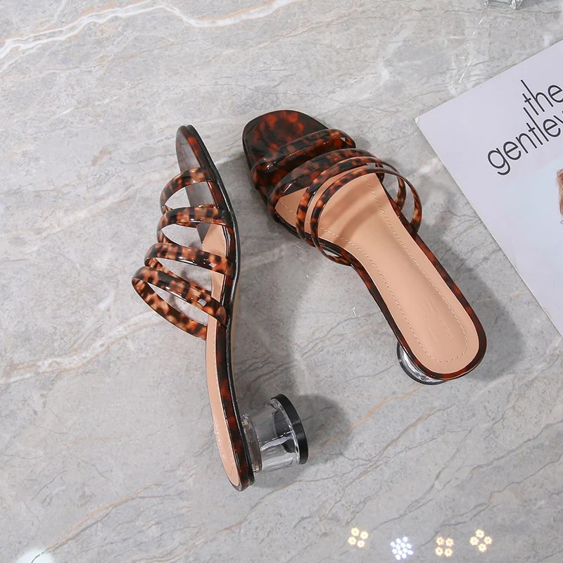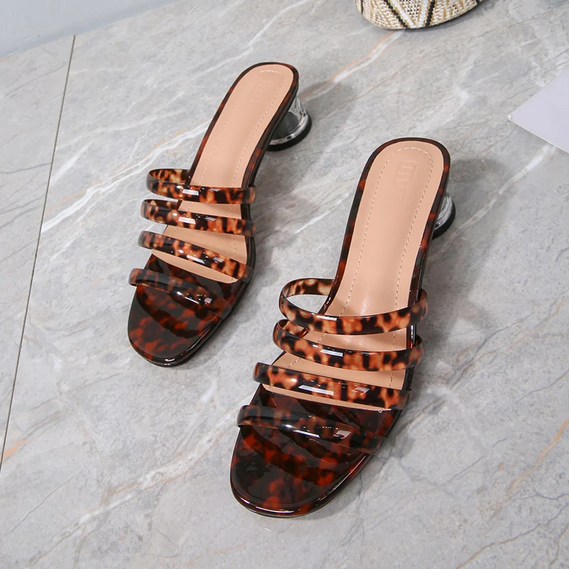 Woman Sandals 2021 Summer Leopard Print Open Toe 4cm Rubber Sole Heel Shoes Female Fashion Elegant Platform Footwear Slippers