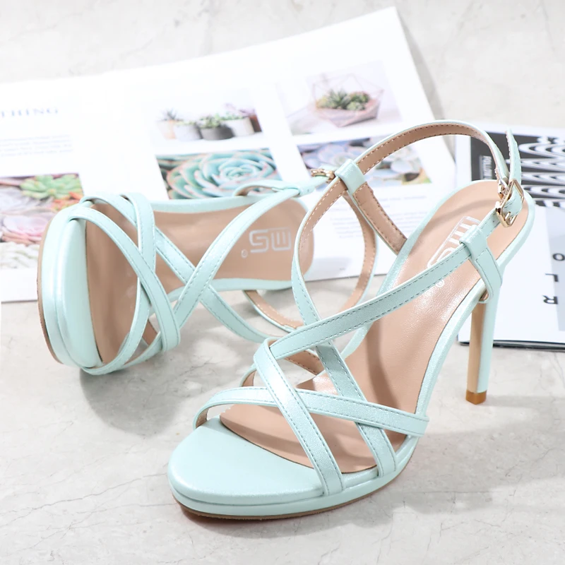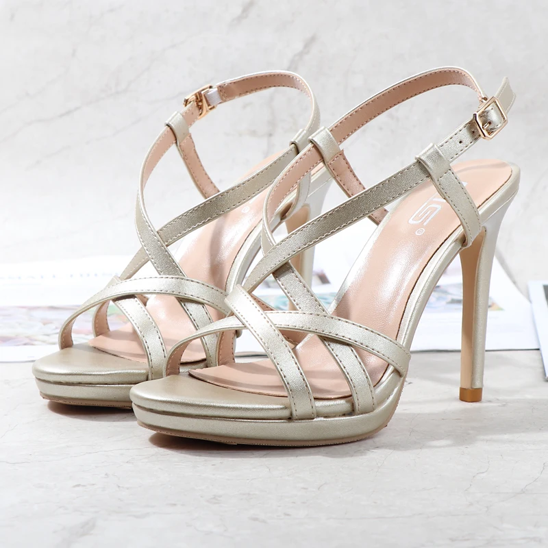 Women Sandals Super High Heel New European and American Buckle Sexy and Beautiful Open Toe Hollow Rome Joker Stiletto Sandals