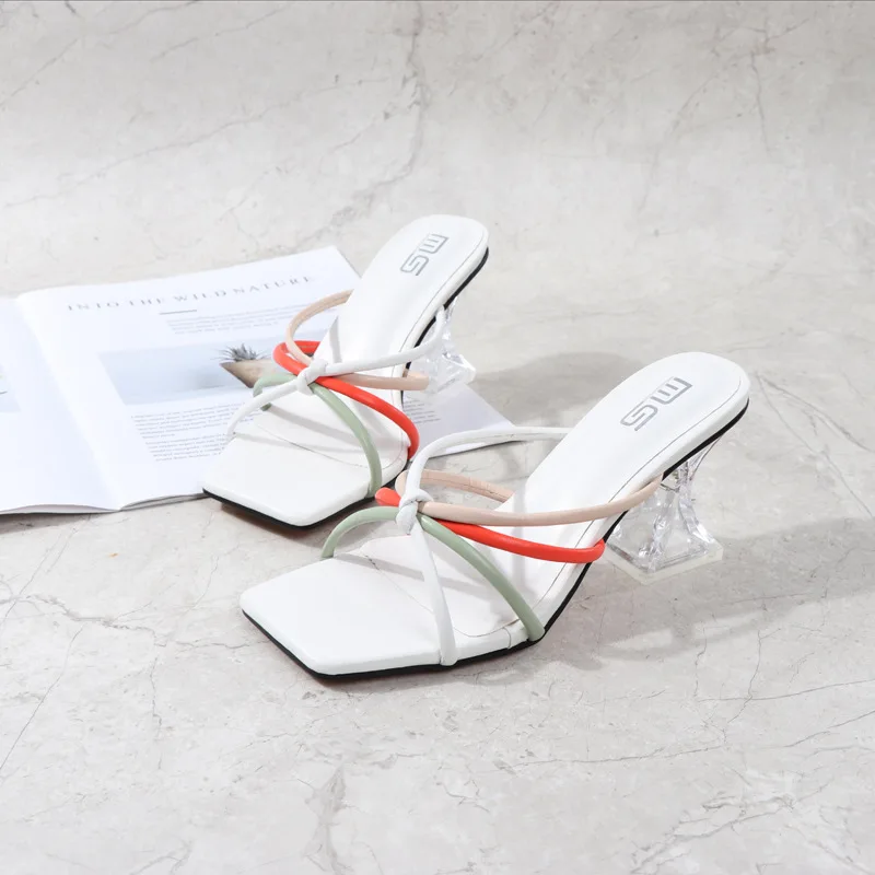 Women Shoes 2021 New Fashion Elegant Banquet High-heel Sandals Large Size Hollow Open-toed Crystal Wear Women's Slippers