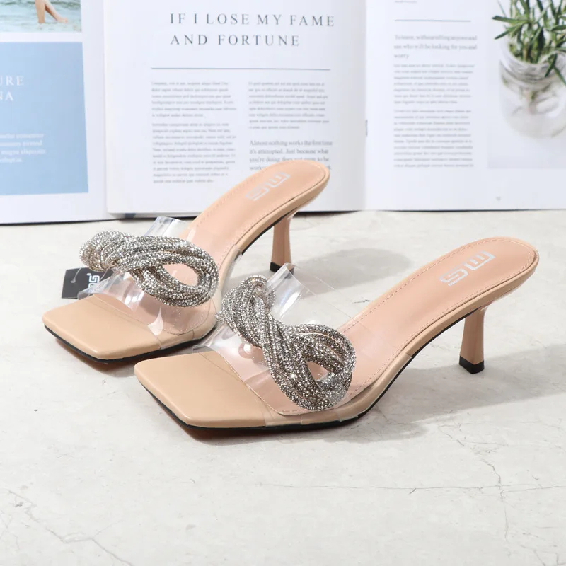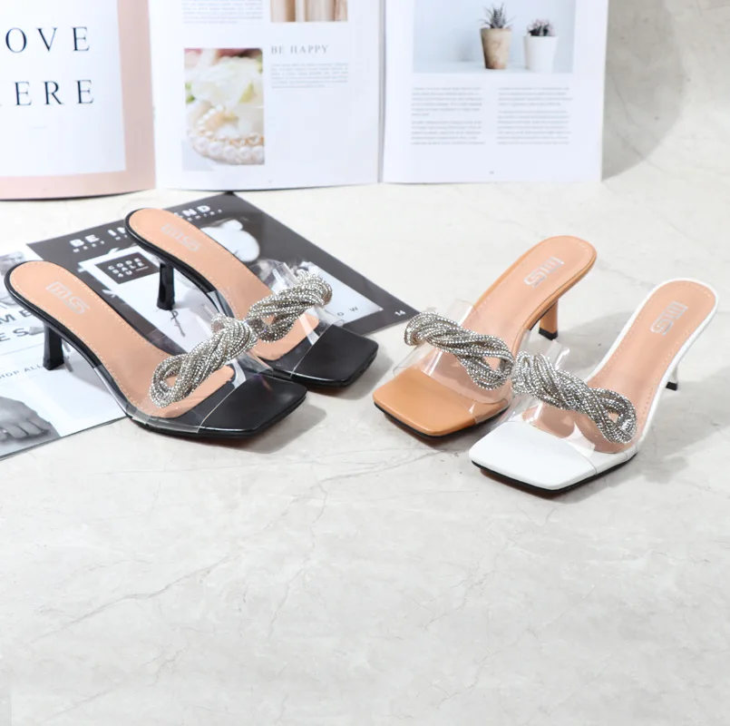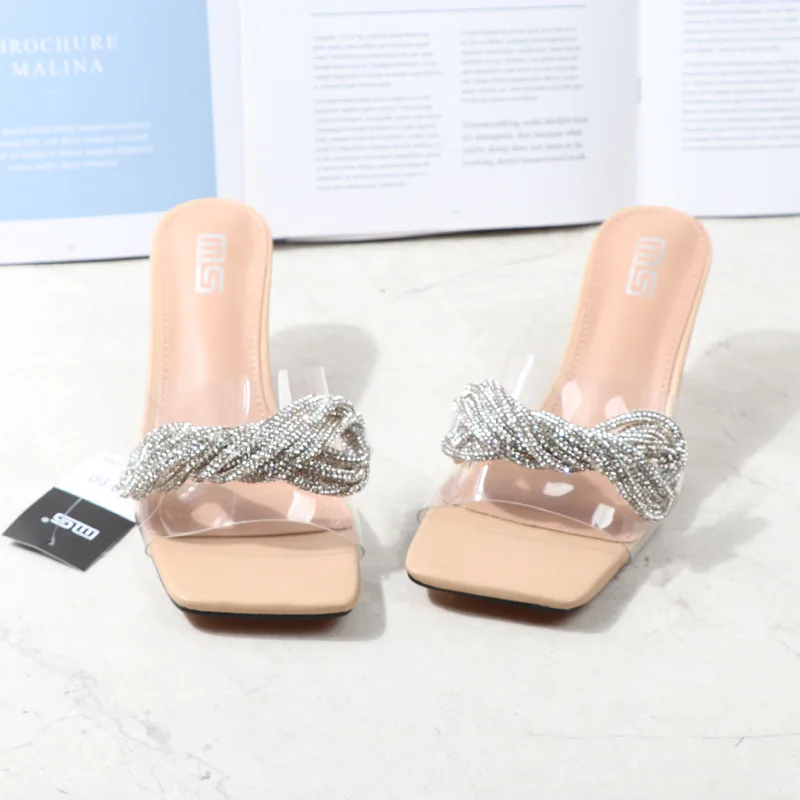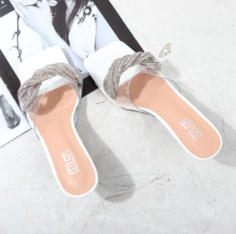 Women Shoes One Word Summer 2021 Fairy Wind Transparent Straps Open Toe Sandals Simple and Comfortable Outdoor Party Slippers