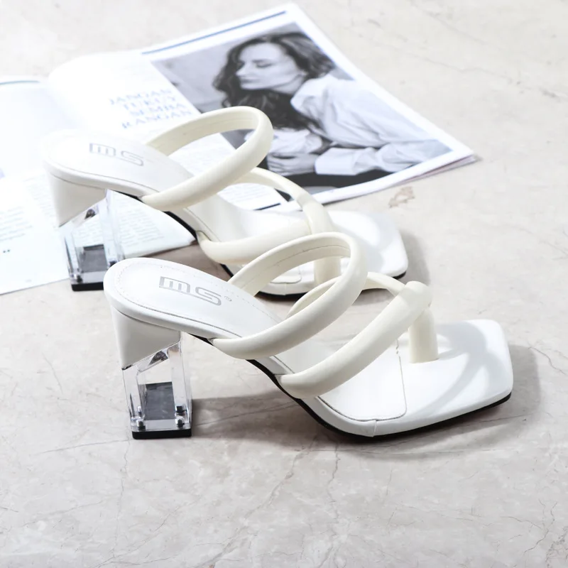 Women's Sandals 2021 Summer Clip Feet New Style Outside Pure Color Europe and America Sexy Plus Size Crystal High Heel Slippers